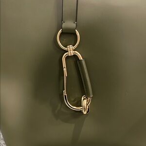 Moss green leather hobo bag with large "belay" clasp closure. Exterior slip pocket, interior wall pocket, and spacious interior. 10.6" strap drop. 11.4"H x 13"W x 6.3"D.