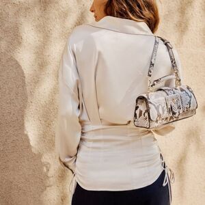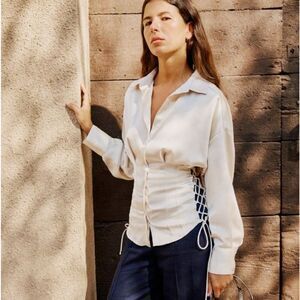 BNWT ZARA FITTED SATIN EFFECT DRAWSTRING SHIRT SOFT GOLD - REF. 844