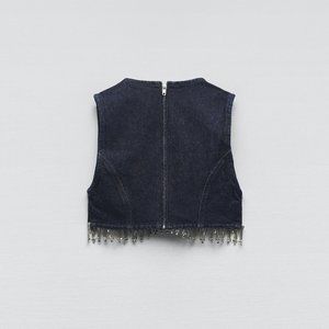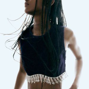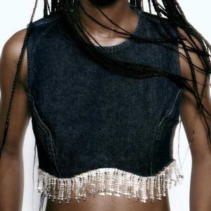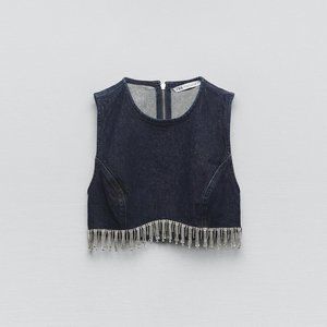 BNWT ZARA JEWEL DENIM TOP DARK INDIGO CROP TOP - REF. 7227/240 SMALL