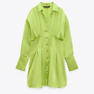 BNWT ZARA SATIN EFFECT SHIRT DRESS LIME GREEN - REF. 3564/166