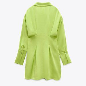 Brand new with tag, bought directly from Zara Tailored mini dress with darts at waist. V-neck lapel collar and long sleeves. Front jewel button closure. LIME GREEN | 3564/166 OUTER SHELL 70% viscose · 30% polyester