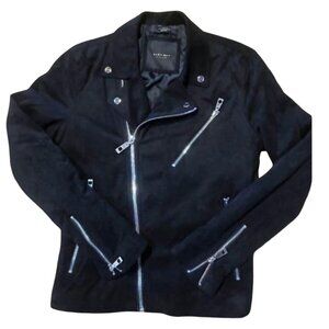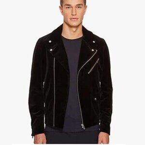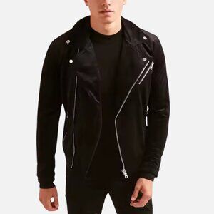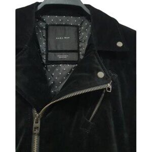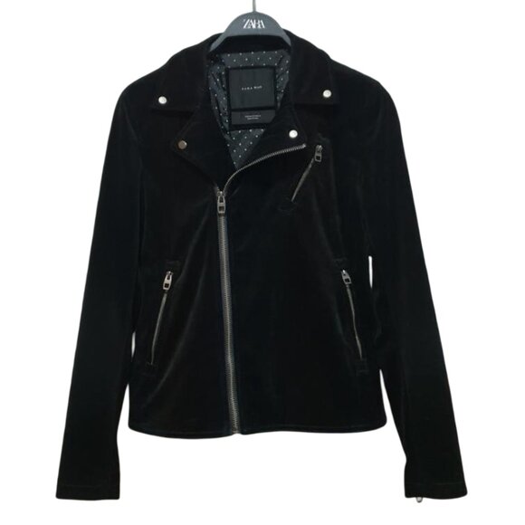 BNWT Zara Man Black Velvet Full-Zip Moto Jacket, Size M