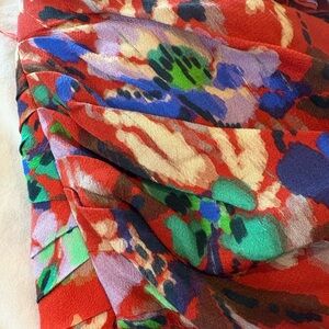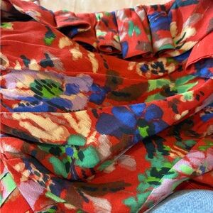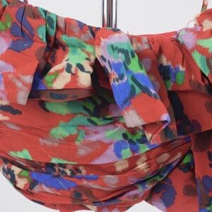 The vibrant red hue paired with a playful floral pattern creates a captivating look for any party or cocktail event. The top's cropped cut and ruffle accents add a touch of flirtatiousness, making it a perfect choice for the summer, spring, or fall seasons. Available in size large and tailored to a regular fit, this garment is easy to slip on with its pullover closure. The wired design ensures a flattering silhouette, making it a standout piece in any fashion-forward collection.