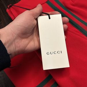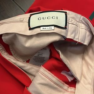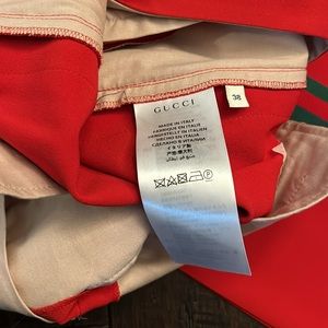 100% authentic as always! Gucci red with green Gucci stripe pant. They are meant to be cropped. Size 38. True to size super cute high waisted.