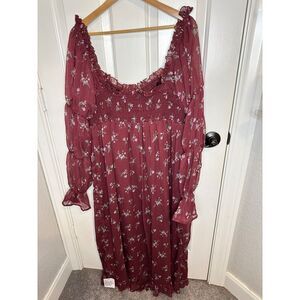 BNWT ASOS Maternity Burgundy Floral Print Milkmaid Long Sleeve Midi Dress Sz 12