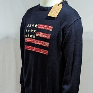 Unisex Original Weatherproof Vintage Cotton Knit American Flag Sweater Large NWT. The sweater measures approximately 22" across from armpit to armpit and approximately 28" from top to bottom. Patriotic , warm and comfortable. Perfect as a gift, stocking stuffer or Easter basket item. Perfect all year round. From a smoke free home. Classic americana style. Great to wear on vacation, in the mountains or any time.
