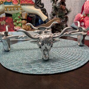 The design features twisted aluminum "ropes" and steer heads at the ends, suggesting a Western or Southwestern theme.