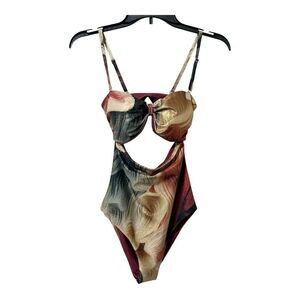 BOAMAR Women’s Royal Gold Shimmer Cut Out One-Piece Swimsuit. Size Small.