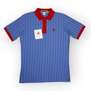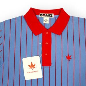 BOAST USA Men Small Vertical Stripe Polo Carolina Blue Red Leaf Logo NWT $95