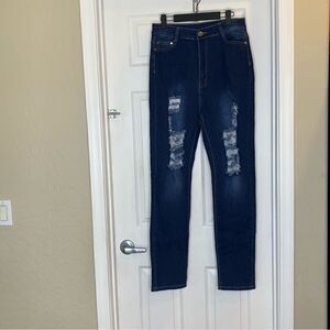 BOB Dark Denim Distressed High Rise Skinny Jeans Size 15/16