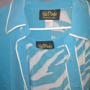 ❤️BOB MACKIE Wearable Art 100% Silk 2 Piece Twin Set Tank and Blouse Top