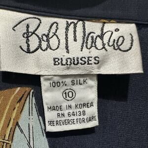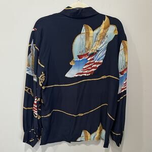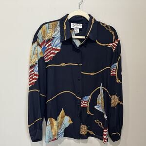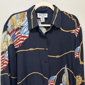 BOB MACKIE 80's Neoclassic Nautical and American Flag Silk Blouse Size 10