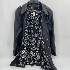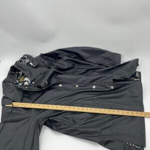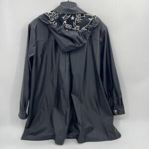 BOB MACKIE Rain Coat Womens Size 1X Black Zodiac Hood Snap Closure Goth Jacket