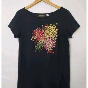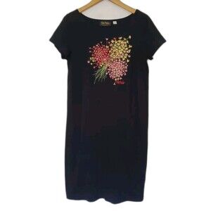 BOB MACKIE WEARABLE ART FLORAL EMBROIDERED SHORT-SLEEVE T-SHIRT DRESS SIZE SMALL