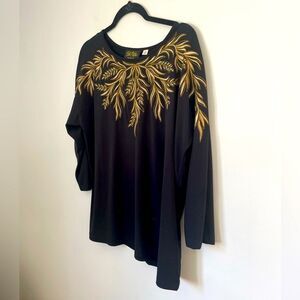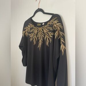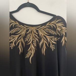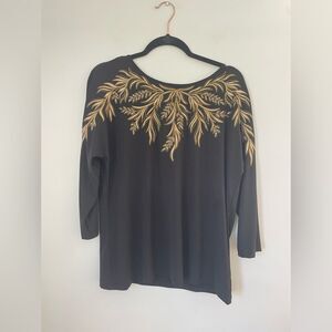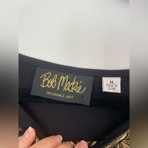 BOB MACKIE WEARABLE ART Black Gold Embroidered Rhinestone 3/4 Sleeves blouse Womens's M