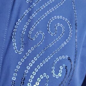 BOB MACKIE, wearable art blouse. Royal blue size small. Sequin and lovely button