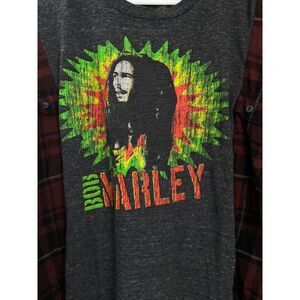 BOB MARLEY Reworked Flannel. Upcycled Flannel Shirt. Flannel Sweatshirt.