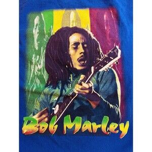 BOB MARLEY Shirt Sz XL Royal Blue Front Back Printed Reggae