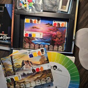 New in box...all pieces new and intact. BOB ROSS, "Art of Chill" board game for ages 12+...two to four players. Each game takes an average of 30 minutes to play. Have fun playing this game of strategy and serendipity! Earn "chill points" by painting landscape features such as "happy little trees" and "almighty mountains" using "colors" and brushes" from your hand of cards.