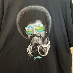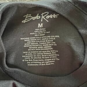 BOB ROSS Graphic Print Black T-Shirt Plus Sz M Artist Big Hair Happy Cloud NEW