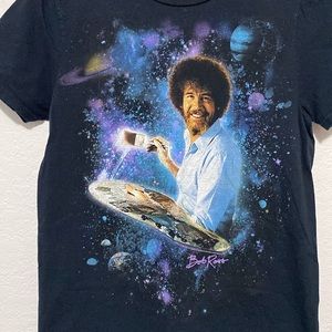 AMAZING TEE by Bob Ross brand ! Space Galaxy & a portrait of Bob Ross - Fun for the collector - great gift ! Gently Loved and tons of life left - See all pics