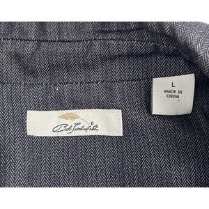 BOB TIMBERLAKE Womens LARGE Black Herringbone Velvet Trim JACKET Pockets EUC