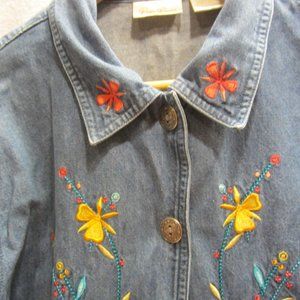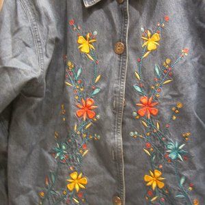 BOBBIE BROOKS DENIM W/FLORAL EMBROIDERED JACKET, SIZE SMALL