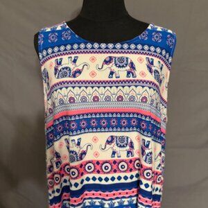 The Bobbie Brooks dress in size 2X is a plus-size shirt dress designed for women. It features a sleeveless design with a round neckline and a pullover closure. The knee-length dress comes in a multicolor pattern, perfect for a casual or dressed-up look. Made by the well-known brand Bobbie Brooks, this dress offers comfort and style for a variety of occasions.