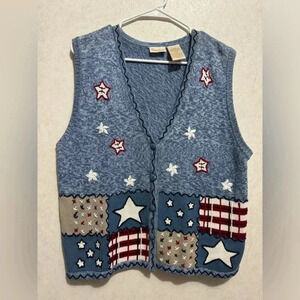 BOBBIE BROOKS Vintage Women’s Blue Knit Vest Stars Flag Red White Patriotic XL