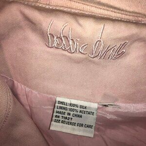 BOBBIE BURNS SILK BOMBER JACKET SIZE 6 BLUSH PINK DRAWSTRING BOTTOM WOMENS