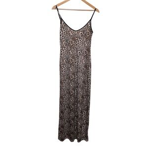 BOBBLES & LACE Wild Thoughts Leopard Print Jersey Knit Maxi Dress Size Medium