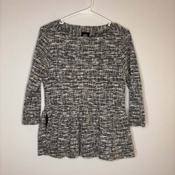 BOBEAU 3/4 Sleeve Peplum Pullover Pockets Knit Black Heather Size Medium