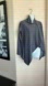 BOBEAU Gunmetal Blue denim-look fleece cardigan, drapey, full cut, asymmetrical, 1 leather look button, long sleeves. Soft & cozy. Fabric: 68% polyester, 27% rayon, 5% spandex.