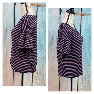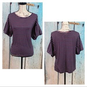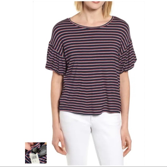 BOBEAU NWT Navy Red Striped Knit Bubble Sleeve Top