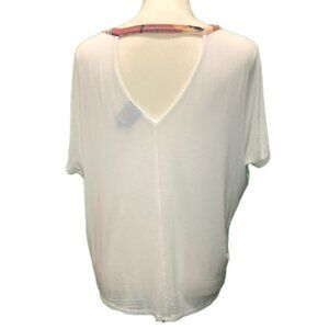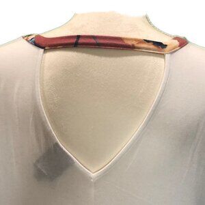 BOBEAU (PM) warm pink floral top with solid color cream back. Has cutout section in back. Super soft, nice drape.