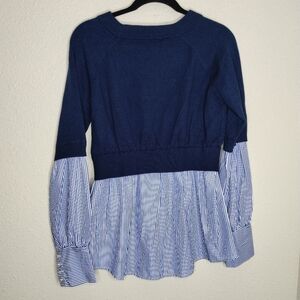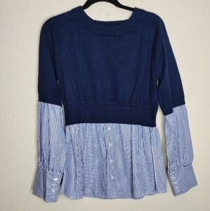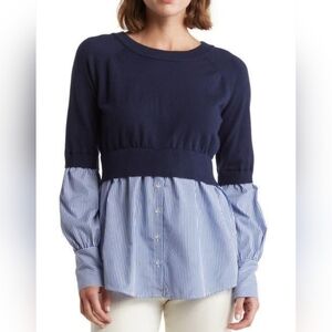 BOBEAU Twofer Poplin Sweater Top In Navy Women's Size Medium
