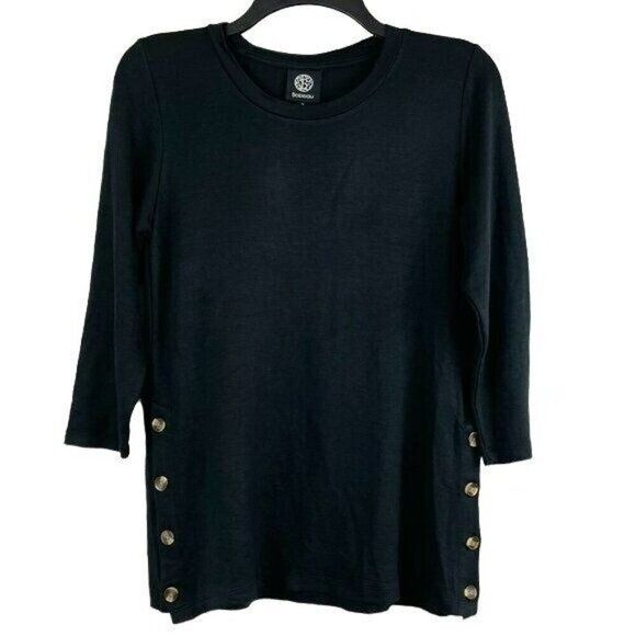 BOBEAU Women Pullover Side Button Crew Neck Top Size S