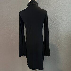 BOBI Los Angeles LBD - Witchy Trumpet Sleeves Turtleneck Black Knit Mini Dress S