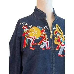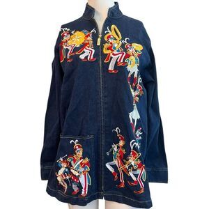 BOB MACKIE Ladies Medium Full Zip Jean Jacket Marching Band Parade Wearable Art
