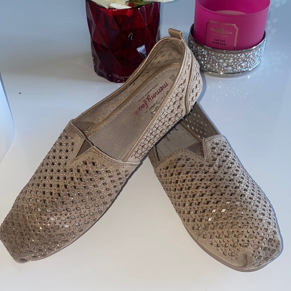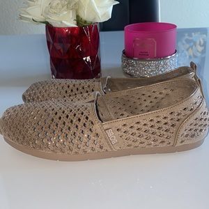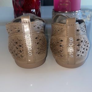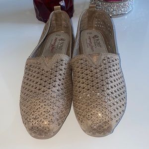 Gorgeous sparkly tan BOBS from skechers.. Brand New without tags. Memory foam Its 100% Leather inside.. size W 6.5..