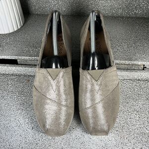 BOBS By Skechers Leather Metallic Slip On Shoes Flats Loafers Size 8.5 Boho