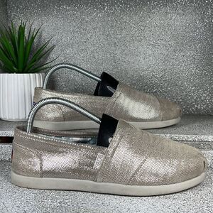 BOBS By Skechers Leather Metallic Slip On Shoes Flats Loafers Size 8.5 Boho