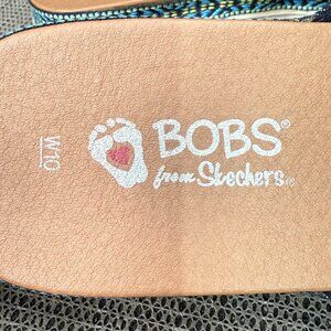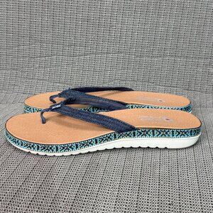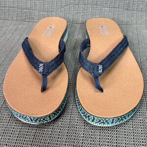BOBS By Skechers Womens size 10 Navy Blue Wedge Flip-Flops Patterned Edge Soles