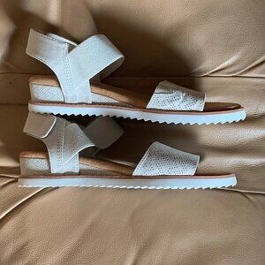 BOB'S FROM SKECHERS MEMORY FOAM TAUPE/TAN SANDALS, EUC, 7.5 WIDE