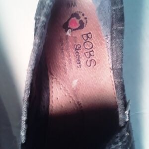 BOBS For Sketchers Shades of Grey Plaid Fabric Slip on Shoes. Inside soles have signs of wear. Please view all the pictures.