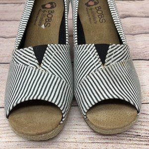 BOBS Skechers Women Size 7 Black White Wedge Heel Memory Foam Ankle Boots.