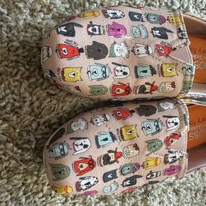 Colorful flats with playful pattern. Featuring dogs wearing outfits. Features memory foam insoles for comfort.