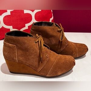 BOBS for Skechers - Elegant, tan suede lace-up ankle wedge booties. Cushioned footbed for great comfort. Perfect for adding a touch of stylish to any outfit.