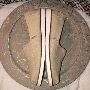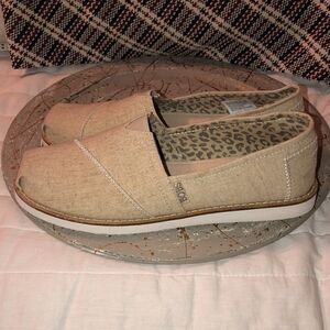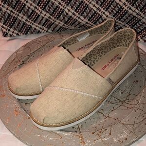 BOBS 8.5 by Sketchers Memory Foam Linen Canvas Slip On Flats Shoes