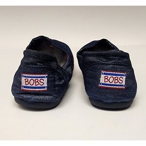 BOBS BY SKECKERS WOMEN'S CLASSIC SLIP-ON DENIM BLUE CASUAL FLAT SHOES SIZE 9.5